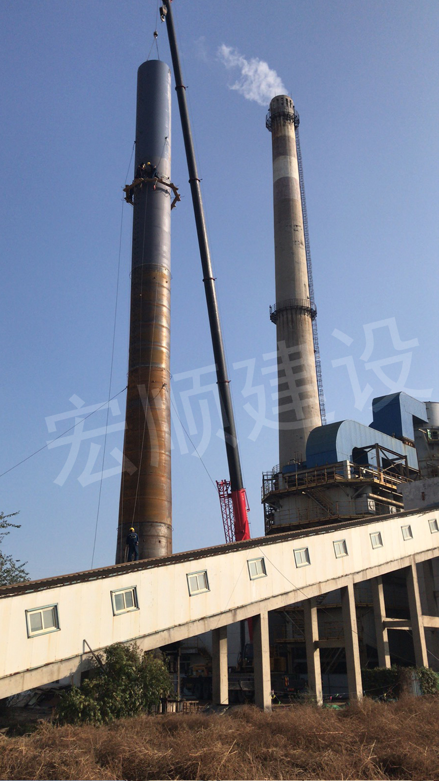 鋼煙囪新建安裝工程組裝過程-宏順建設(shè)