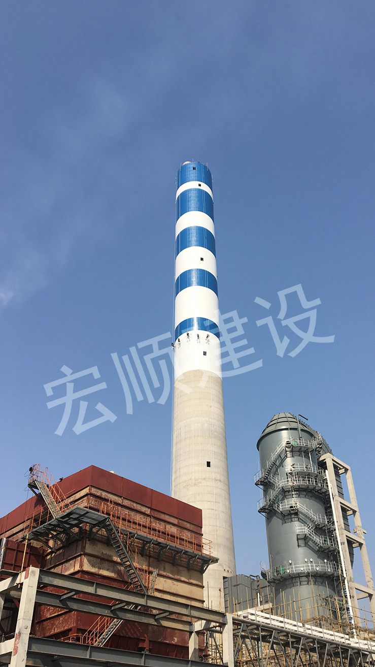 水泥煙囪外壁刷藍白色環(huán)標識讓環(huán)境添加一到風景!